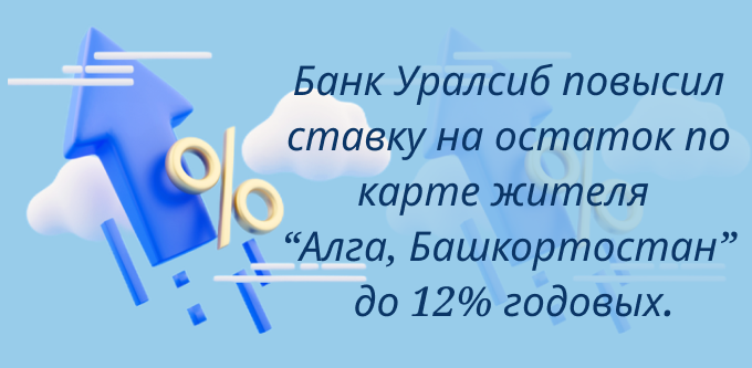 Банк Уралсиб объявил о повышении ставки на остаток по карте жителя «Алга, Башкортостан» до 12% годовых. Это изменение затрагивает как новых клиентов, так и уже имеющих карту.